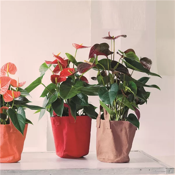 Die prachtvolle Flamingoblume (Anthurium), auch Anthurie genannt, ist mit ihren kräftig roten Hochblättern ein schöner Farbtupfer im grauen Winter und passt mit ihrer Retro-Ausstrahlung ausgezeichnet in die Trendwelt.