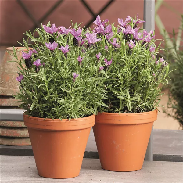 Die markanten Blütenstände des SCHOPFLAVENDES (Lavandula stoechas) verleihen dem mediterranen Bild eine verspielte Note. Die typischen „Schöpfe“ über den Blüten wirken fast wie kleine Fahnen und machen die Pflanze sofort erkennbar. Gleichzeitig verströmt das schmale Laub einen intensiven Duft, der das Gefühl von Süden aufkommen lässt. Damit der Schopflavendel lange kompakt und blühfreudig bleibt, sind durchlässige Erde und zurückhaltendes Gießen entscheidend, denn Staunässe verträgt er schlecht. Ein leichter Rückschnitt nach der Blüte fördert einen buschigen Wuchs und kann eine zweite Blüte anregen.